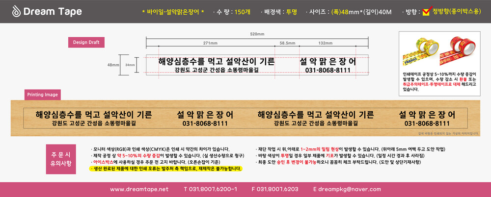 ※ 최종 수량은(제작 제품) 공정상 ±5~10% 정도의 오차가 발생 할 수 있으며, 추후 환불 혹은 기성 제품으로 교환하여 드립니다.