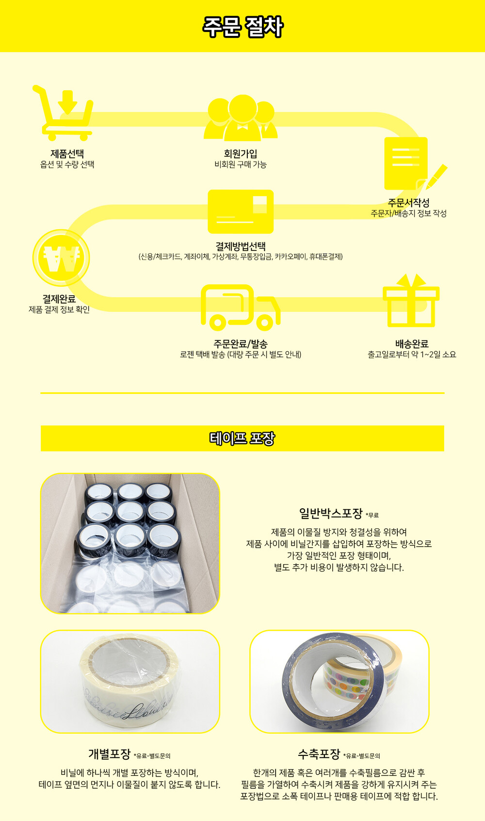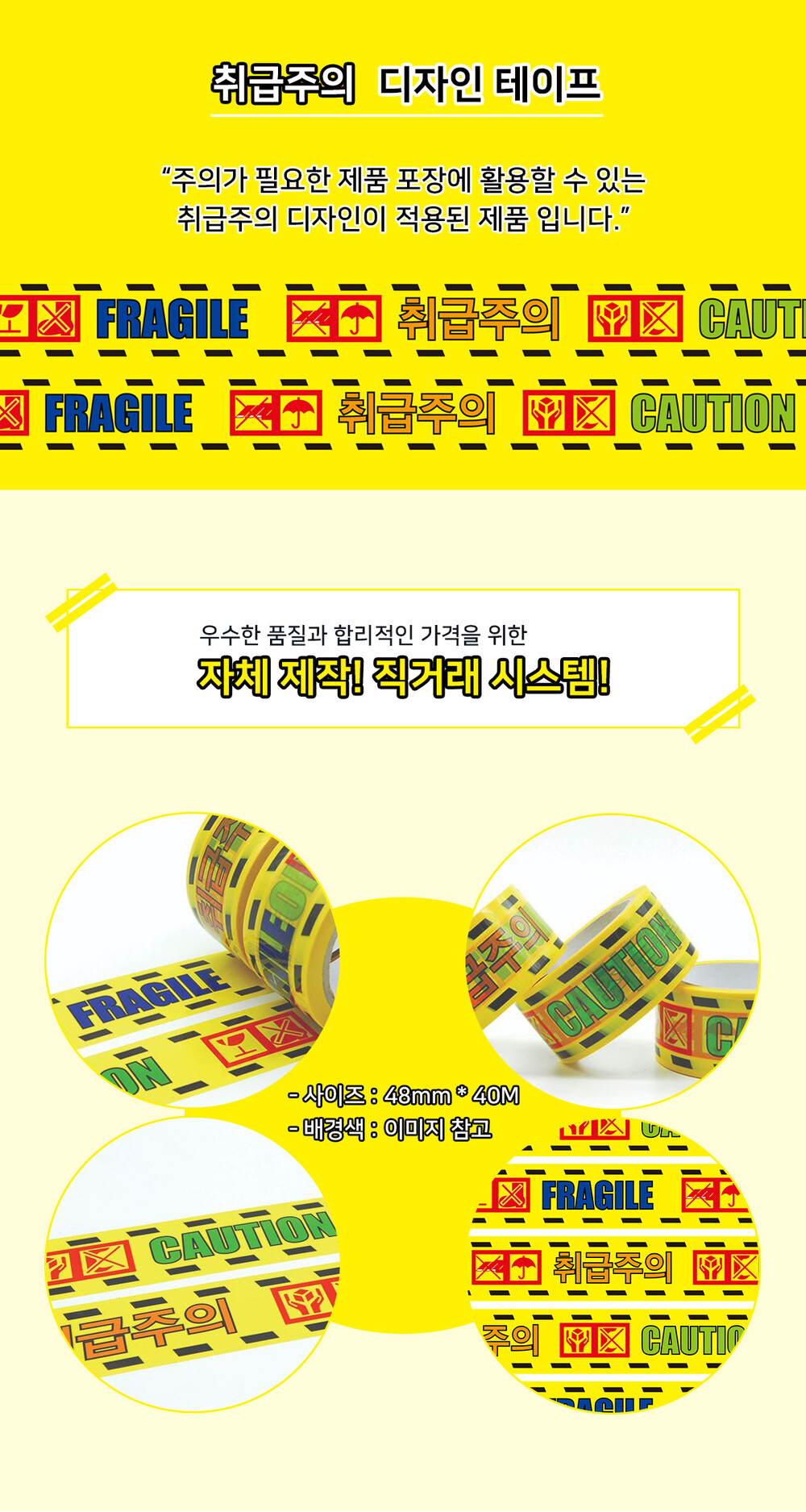 [취급주의-노랑] 디자인 테이프 (48mm*40M) 24개/50개/100개/120개