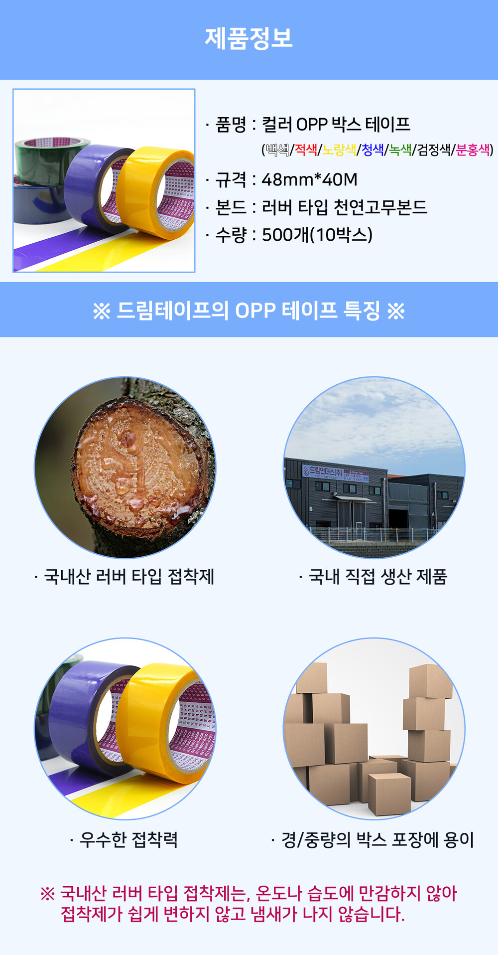 청색 OPP테이프-러버 타입 (48mm*40M) 10박스-500개