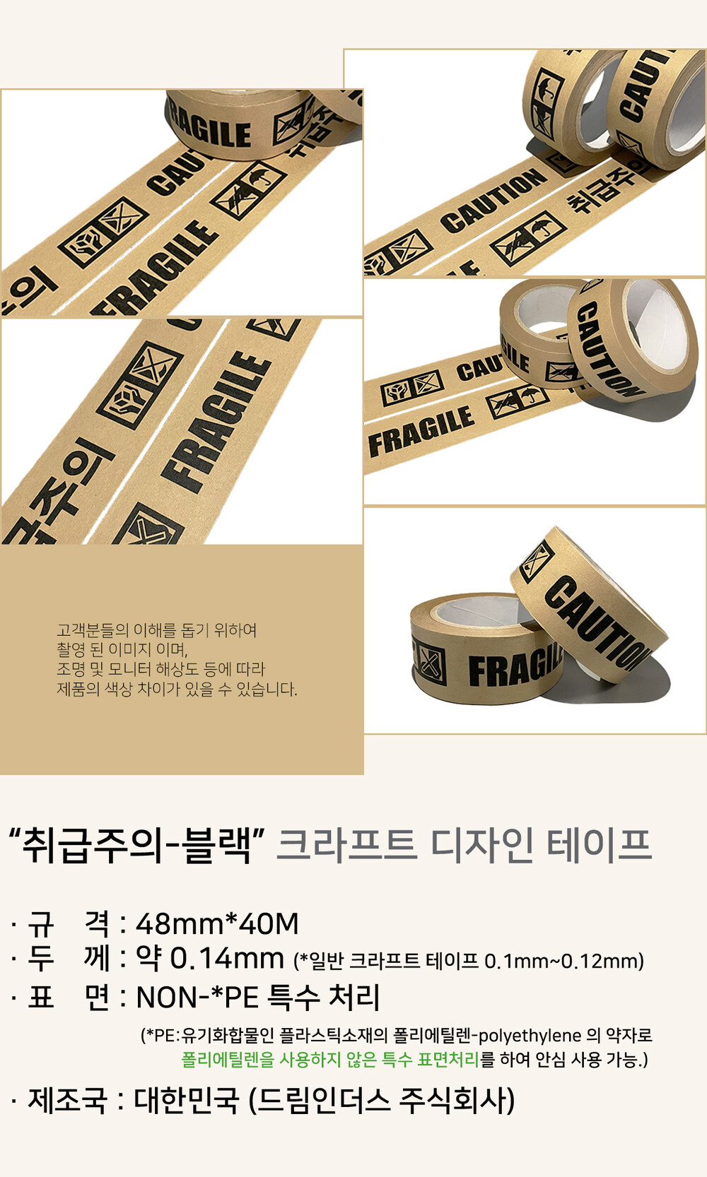 [취급주의-블랙] 디자인 크라프트(NON-PE) 테이프 (48mm*40M)