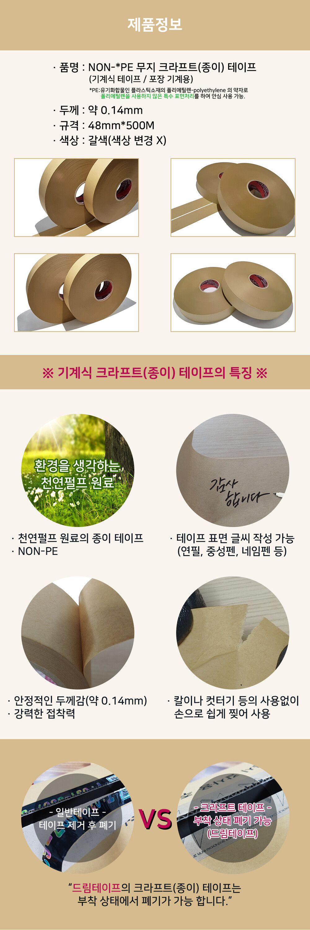 기계식 NON-PE 크라프트(종이) 테이프 7박스=35개 (48mm*500M)