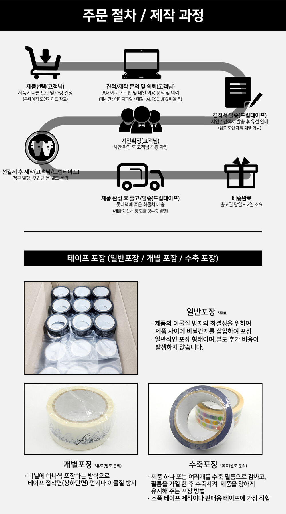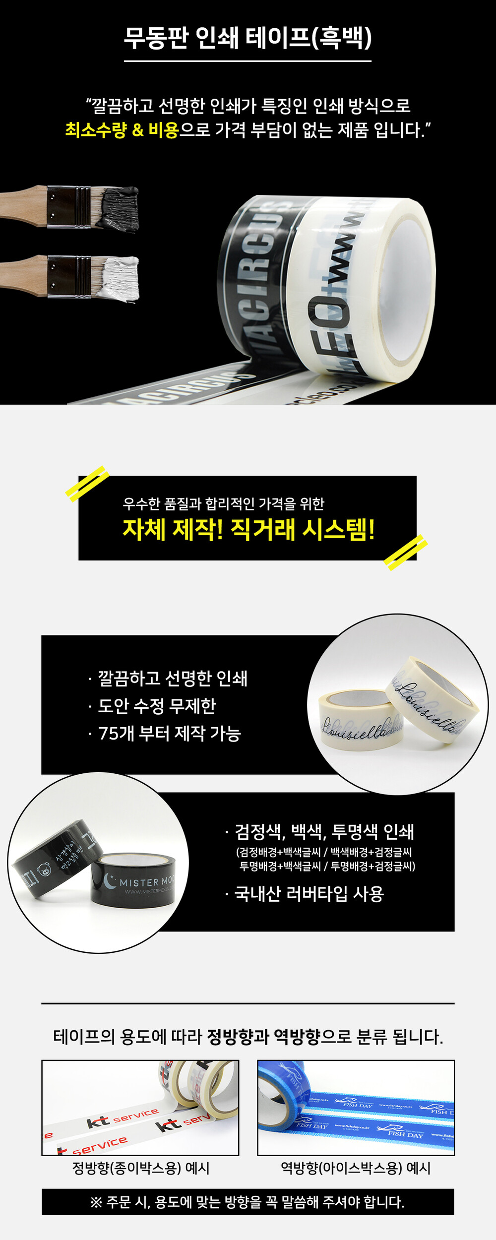 [주문제작] 무동판 흑백 인쇄 테이프 1150개(48mm*40M)