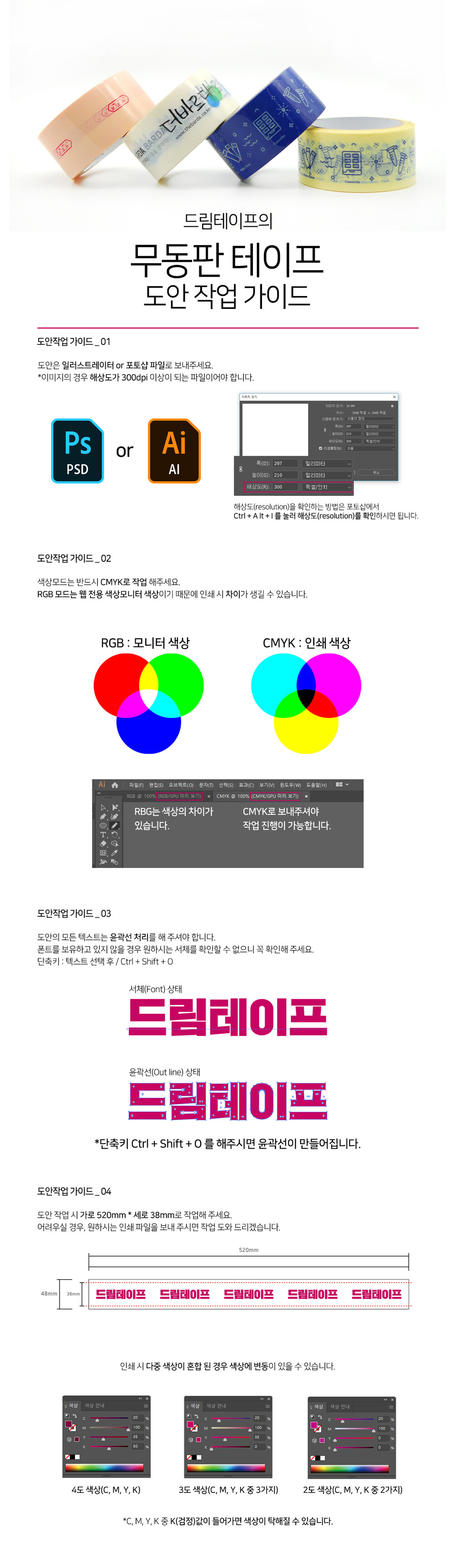 [주문제작] 무동판 흑백 인쇄 테이프 690개(48mm*40M)