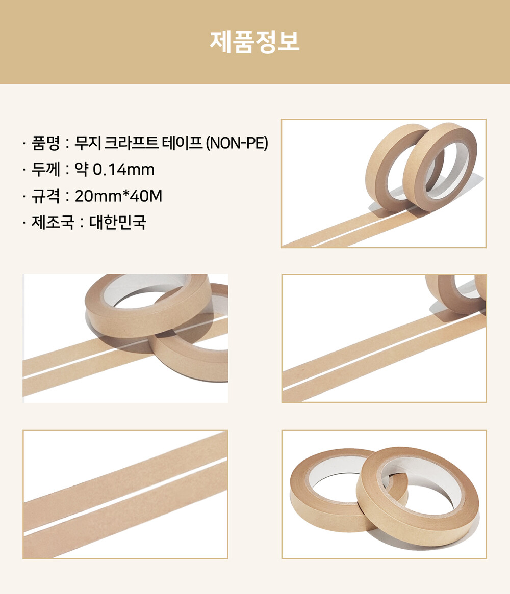무지 크라프트(NON-PE) 테이프 (20mm*40M)