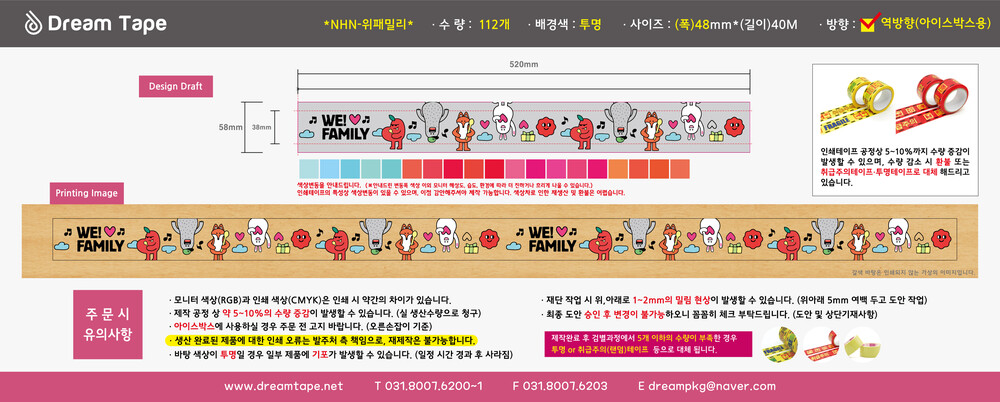 ※ 인쇄테이프는 디지털 인쇄와 달리 화면과 다소 색상이 진하거나 흐리게 변동이 있을 수 있는 점 참고 부탁드립니다.